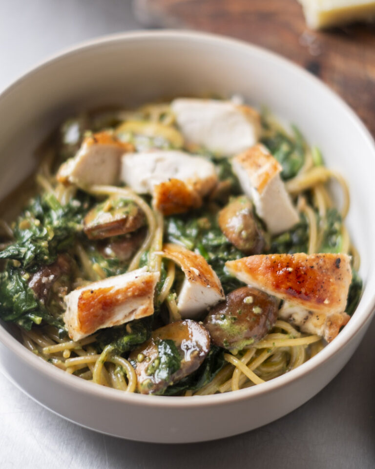 The combination of tender chicken breast, earthy mushrooms, vibrant spinach, and creamy pesto sauce is just a dream. It’s one of those dishes that tastes like you’ve put in a lot more work than you actually have. And let’s talk about the chicken—no dry chicken breasts here. With the right technique, they turn out juicy and golden every time.